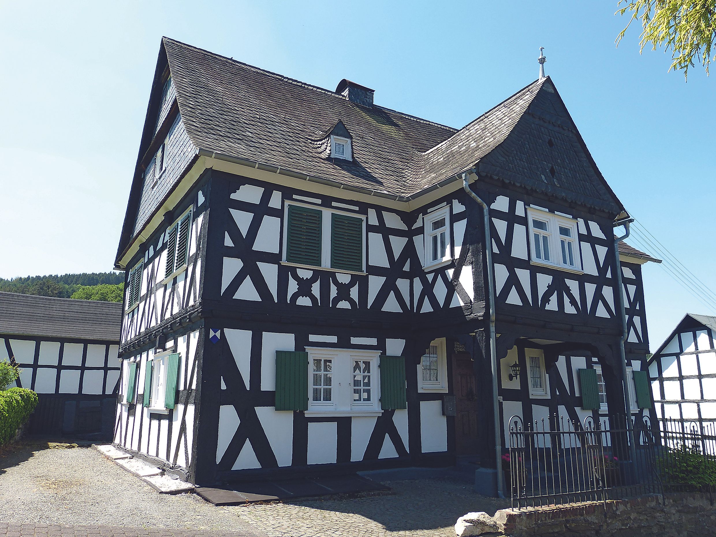 Über den Zuweg- vom Bhf. Scheuerfeld geht’s zunächst zurück zum Hauptweg und über einen engen Pfad hinauf- in Richtung des Taubenstocks. Schöne Hügellandschaften begleiten den Weg in Richtung Steineroth. Oberhalb von Dauersberg genießt ihr den ersten wunderbaren Blick über die umliegenden Hügel. Wer den Steinerother Kopf besteigen will, kann hier vor dem Aufstieg nochmal rasten. Ein paar Meter durch Steineroth wird der Anstieg zum 478 m hohen Gipfel über einen lichten Bergrücken begonnen. Hier wächst eine neue Waldgeneration heran. Oben angekommen zweigt ein kurzer Zuweg zum Aussichtspunkt ab, der sich lohnt. Bei klarer Sicht könnt ihr sogar das Siebengebirge bei Bonn am Horizont sehen. Am Rand von Molzhain geht es hinab zur Dickendorfer Mühle und nur ein paar Meter weiter zum Spielplatz. Über den Elbbach nach Molzhain, noch einmal durch eine Waldverjüngungsfläche hinauf, ehe es durch das stille Steinebachtal hinunter nach Alsdorf geht, in dessen Ortskern es sehenswerte Fachwerkhäuser gibt. Eines davon ist das geschichtsträchtige und malerische Hüttenschulzehaus aus dem Jahre 1680.