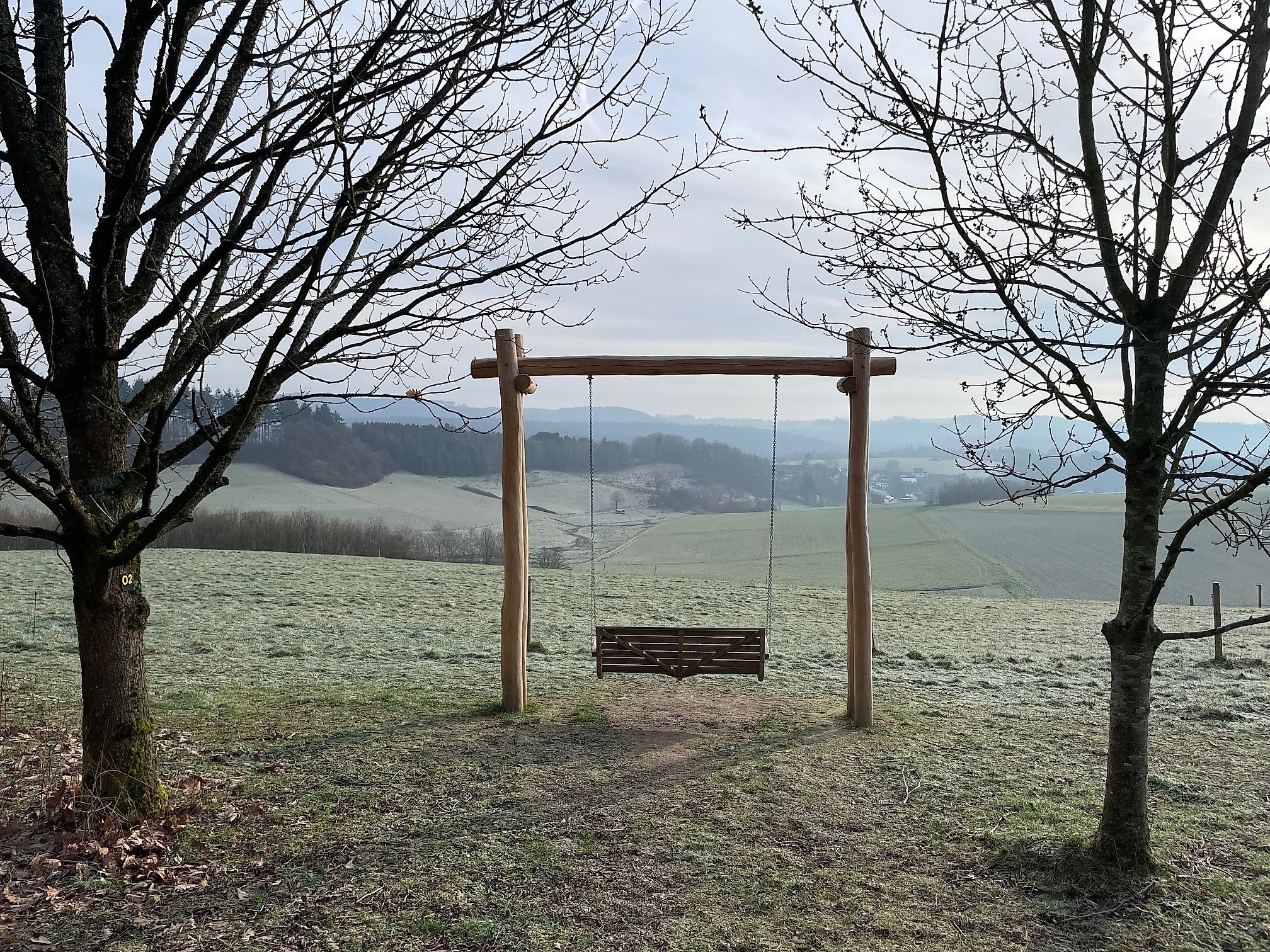 Der O2 bietet uns herrliche Fernsichten und eine abwechslungsreiche Landschaft mit Wiesen, Feldern und Wald. Wir haben mehrere Einkehrmöglichkeiten und für Baumliebhaber gibt es noch die Besonderheit, das Arboretum mit in die Tour einzubauen. Viel Spaß und einen tollen Ausblick bietet die Schaukelbank.