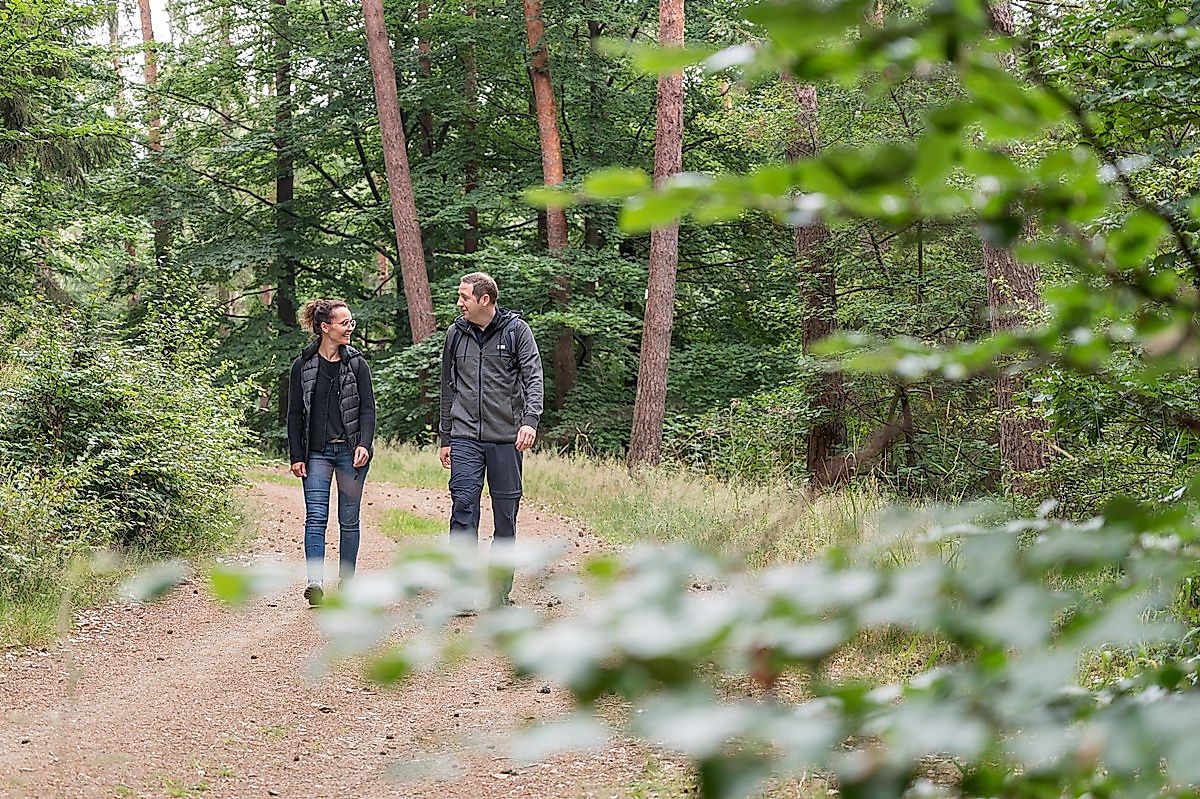 Behind the information board, Erzweg 3 starts. It initially follows the route of Erzwege 1 and 2 but turns left before the forest. The path follows driveways back to Westerwaldpark Gierenderhöhe, the starting point of the hike. It runs on gravel and asphalt and is therefore also suitable for inexperienced walkers or easily manageable with a wheelchair.