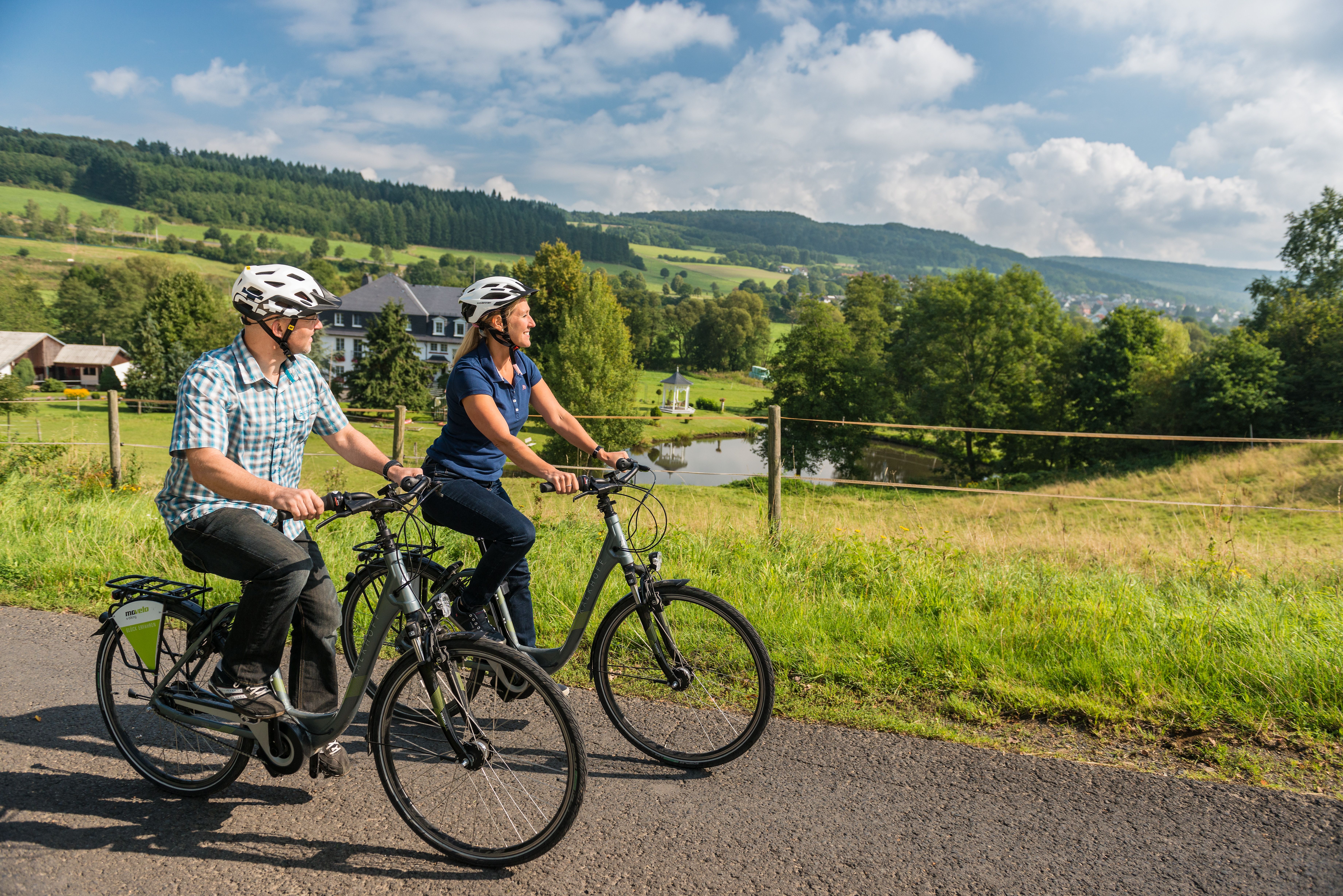 The route is nearly 70 kilometers long and suitable for experienced leisure cyclists. I start in Willingen directly at the Nister source and follow the markings. After the last houses, I turn sharply right and continue through an animal protection area to Bretthausen. Further south lie places like Nister-Möhrendorf and Waigandshain. In a zigzag line and a large arc, I cycle westwards to Bad Marienberg. It goes south for a while before I turn north again. Then I reach Erbach, later Korb. At the shelter further northwest, I turn south again. I circle the Hühnerberg, pass Alpenrod, and cycle north and west again towards Hachenburg. I pass through the town and some fields, then cross the B414. Shortly afterward, there is a sharp left curve, then I reach the Marienstatt monastery. Over many zigzag paths, the way leads me north to Wissen, the route’s endpoint.