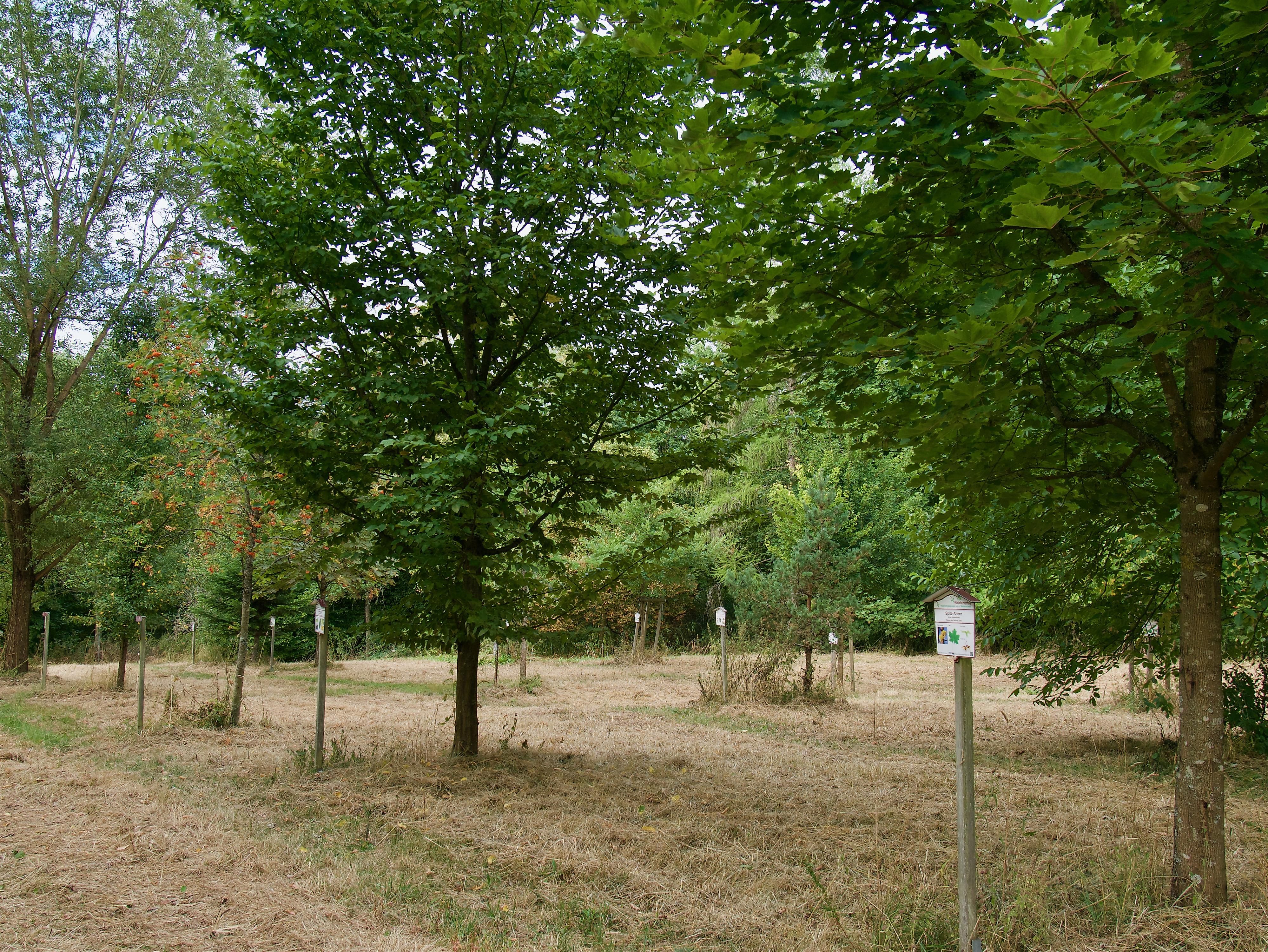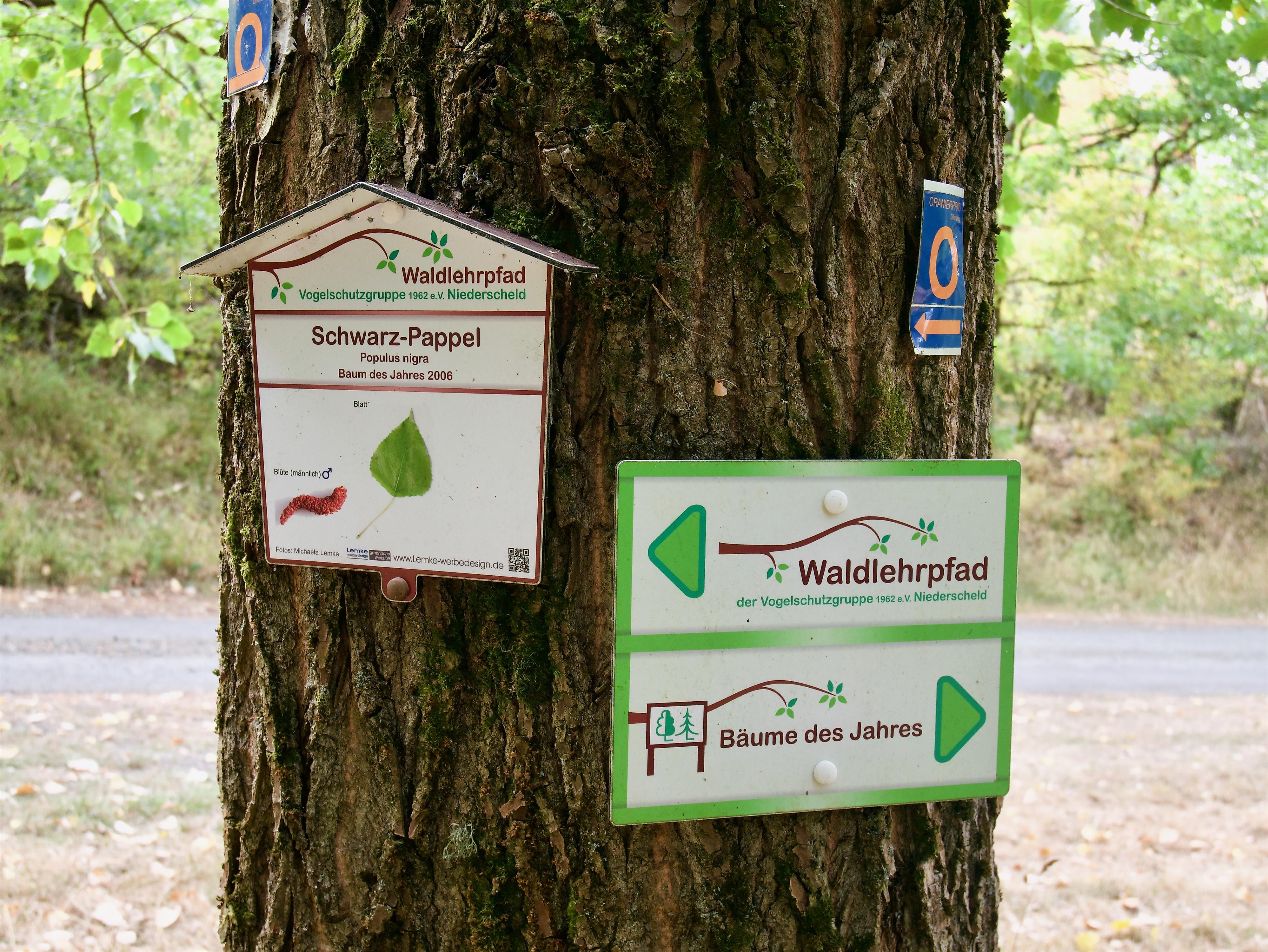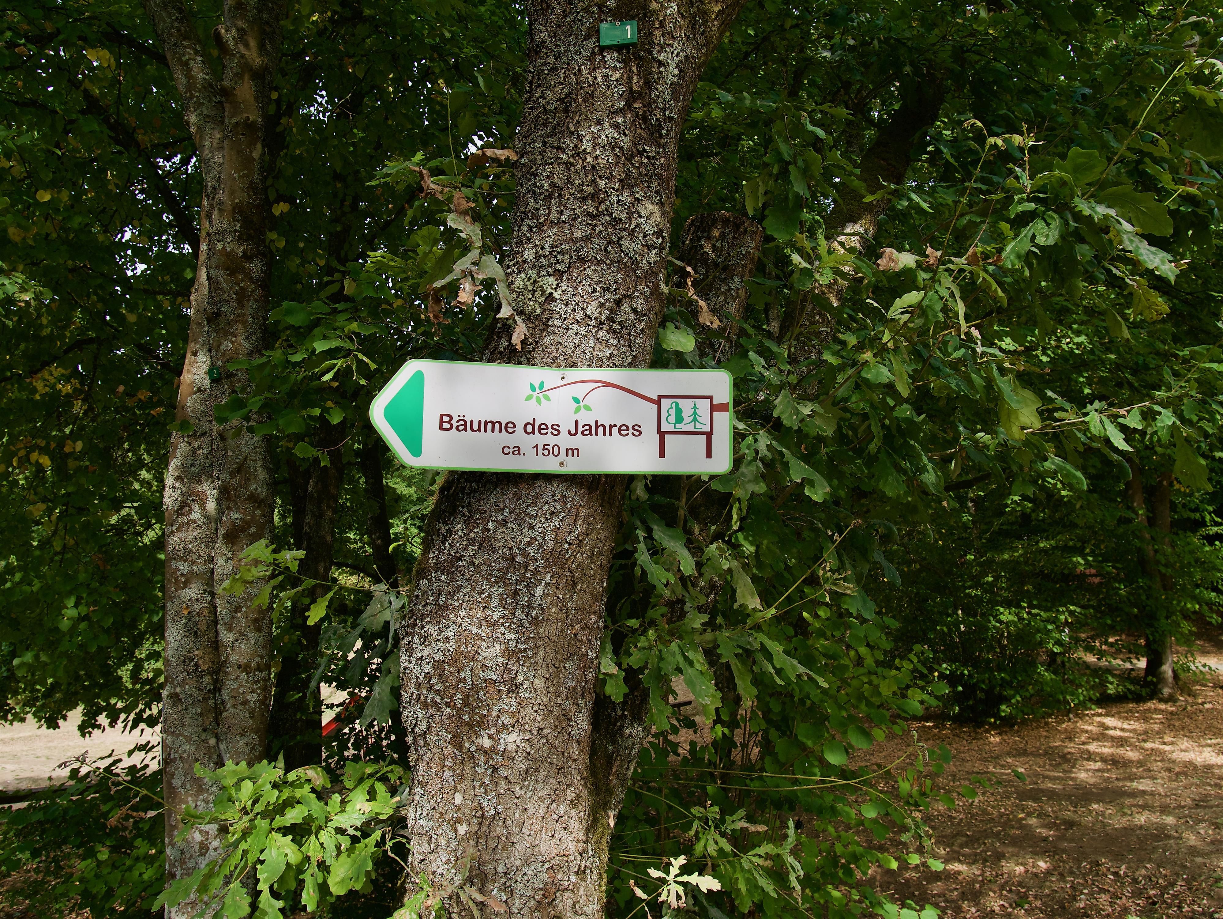 Verzameling van "Bomen van het Jaar" langs het natuurpad in het bos