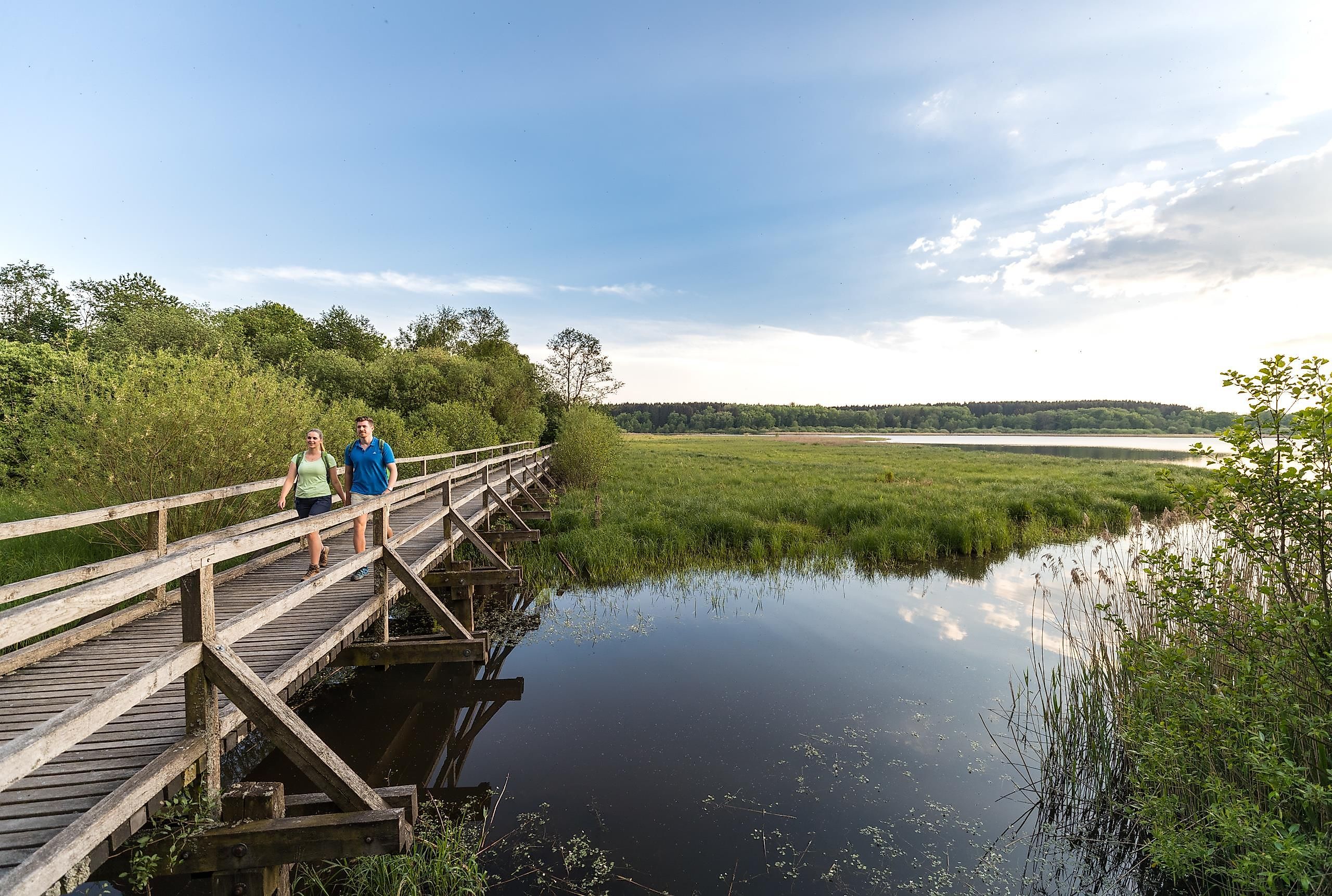 De Wiedquelle ontspringt onder de wortels van een eeuwenoude beuk. Van daaruit starten we en begeleiden de Wied in de richting van Dreifelden, waar we ons kunnen vergapen aan de oudste stenen kerk in het Westerwald, de Drievuldigheidskerk. Aan de oevers van de Dreifelder Weiher, het grootste meer in het merengebied van het Westerwald, pauzeren we op een van de banken, laten onze ziel bungelen en genieten van het adembenemende landschap. We volgen de Wiedweg en verlaten het natuurgebied Dreifelder Weiher in de richting van Oberes Wiedtal, waar we bij het beeldenpark Steinebach komen
